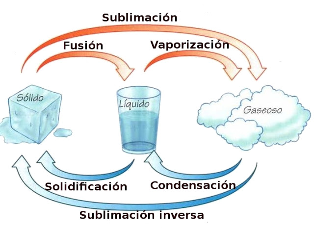 condensación y por último, de solido a gaseoso por medio de sublimación y de